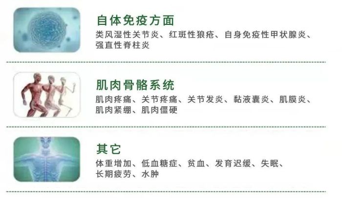 這些中分子免疫復(fù)合物會在一定條件下沉積,除了會引起消化系統(tǒng)自身免疫疾病以外,還會增加肝臟解毒系統(tǒng)和免疫系統(tǒng)負(fù)擔(dān),造成神經(jīng)、心血管系統(tǒng)和代謝過程的紊亂。免疫復(fù)合物的不斷積累,最終就會演化成各個生理系統(tǒng)的慢性疾病。