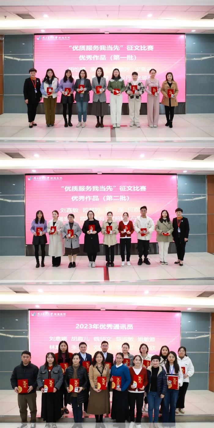 現(xiàn)場(chǎng)還對(duì)2023年“優(yōu)質(zhì)服務(wù)我當(dāng)先”征文比賽優(yōu)秀獎(jiǎng)、2023年優(yōu)秀通訊員、2023年優(yōu)秀通訊科室、2023年文化活動(dòng)先進(jìn)個(gè)人以及2023年文化活動(dòng)先進(jìn)科室等獲獎(jiǎng)項(xiàng)目進(jìn)行頒獎(jiǎng)。