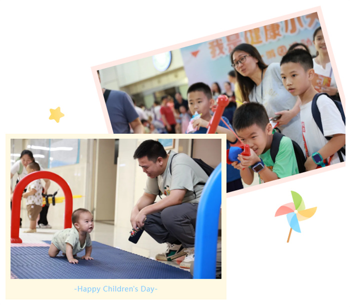 傍晚6時,門診大堂已經(jīng)變身為充滿童趣的樂園??蓯鄣目ㄍㄈ宋镅b飾、精心設(shè)計(jì)的游園攤位,都讓孩子們眼前一亮,興奮不已。孩子們在家長的陪伴下,穿梭于各個游戲攤位之間,盡情享受著游戲的樂趣。每一個游戲攤位都熱鬧非凡,孩子們的臉上洋溢著快樂的笑容。