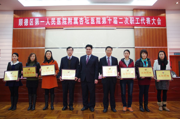 會(huì)上,葉德夫副院長(zhǎng)以《團(tuán)結(jié)奮進(jìn) 銳意創(chuàng)新 彰顯區(qū)鎮(zhèn)合作辦醫(yī)正能量》為題,作了2013年醫(yī)院工作總結(jié)報(bào)告。2013年,附屬杏壇醫(yī)院持之以恒加強(qiáng)醫(yī)德醫(yī)風(fēng)及黨風(fēng)廉政建設(shè),共收錦旗32面,感謝信79封,退回患者紅包57個(gè);引進(jìn)優(yōu)質(zhì)服務(wù)全員培訓(xùn)體系,新推7項(xiàng)便民利民措施,在“2013 年順德區(qū)醫(yī)療機(jī)構(gòu)顧客和員工滿意度調(diào)查”中,社會(huì)滿意度取得位于全區(qū)10間鎮(zhèn)街醫(yī)院第三名的好成績(jī)