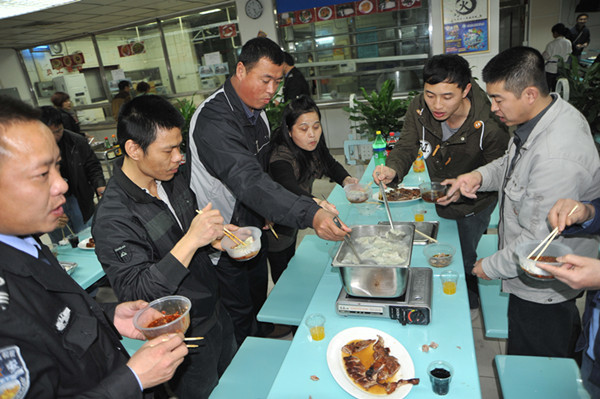 春意盎然,餃味香濃!為了讓春節(jié)期間仍堅(jiān)守在崗位的醫(yī)療、后勤人員感受到“家”的溫暖,過上一個(gè)特別的春節(jié),在春節(jié)來臨之際,我院工會、團(tuán)委在醫(yī)院飯?zhí)门e行了“2014我們的節(jié)日•春節(jié)”外地員工餃子宴,來自五湖四海的同事們歡聚一堂,吃著自己包的餃子,大家都覺得有了家的感覺心里特別溫暖。