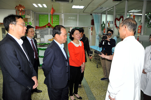 胡允兆副院長代表醫(yī)院向區(qū)領(lǐng)導(dǎo)匯報(bào)了在春節(jié)假期期間我院的工作情況。在春節(jié)期間,我院門診部、住院部正常接診,每日1000多名醫(yī)務(wù)人員放棄休假,無私奉獻(xiàn),節(jié)日繼續(xù)堅(jiān)守崗位,七天假期我院門診部、急診共接診15700多人次,平均每天接診2200多人次;每日住院人數(shù)近670人,新收入院共680多人次;共開展手術(shù)50多例次。同時(shí),全體員工高度重視人感染H7N9禽流感防控工作,密切監(jiān)測每一位發(fā)熱者。由于全體醫(yī)務(wù)人員的努力,保障了春節(jié)期間的醫(yī)療安全。