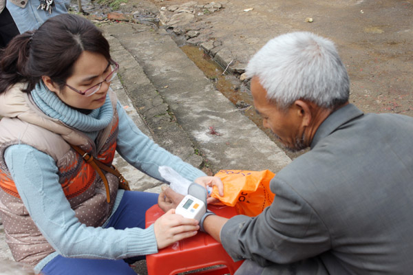 在其他幾戶貧困戶家中,黨員志愿者為他們的家人做了身體檢查,對患病的村民進(jìn)行了及時治療。