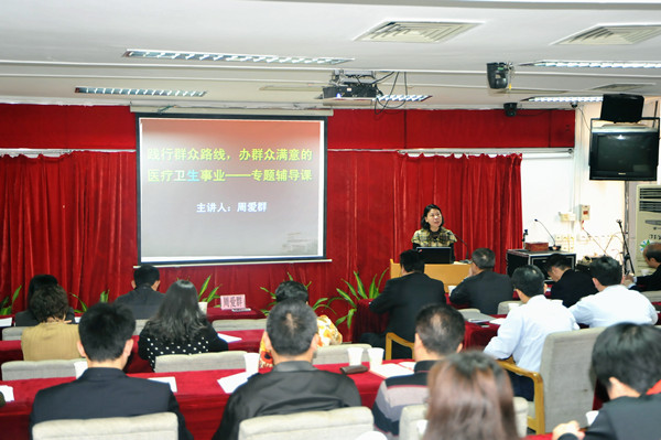 3月18日上午,為推進黨的群眾路線教育實踐活動,區(qū)委常委、區(qū)人衛(wèi)藥監(jiān)局黨委書記、局長周愛群到我院作“踐行群眾路線,辦群眾滿意的醫(yī)療衛(wèi)生事業(yè)”專題輔導課。課程由區(qū)人衛(wèi)藥監(jiān)局黨委副書記、常務副局長馮奕忠主持,醫(yī)院全體黨政領導、職能科正副主任、各支部黨員代表參加了輔導課。