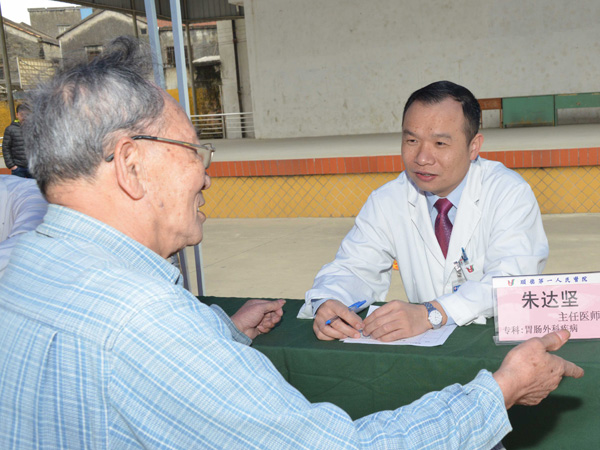 朱達(dá)堅(jiān)副院長在為村民進(jìn)行健康咨詢。 |