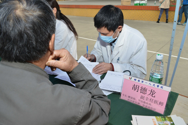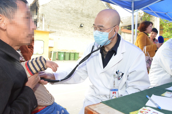 義診中,醫(yī)務(wù)人員以對群眾深厚的感情,貼近村民,像對待家人一樣關(guān)心村民的健康和疾患,認(rèn)真、細(xì)心地為村民進(jìn)行診病和治療,向他們宣講解健康知識。