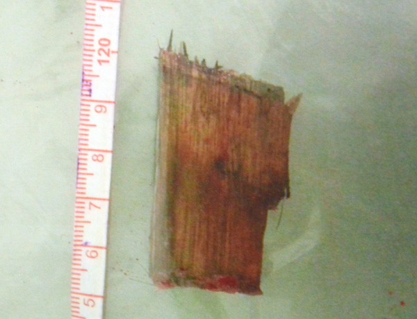 9時(shí)左右,孔先生被送到麻醉科手術(shù)室,麻醉科手術(shù)室相關(guān)工作人員已做好了手術(shù)準(zhǔn)備,孔先生被快速送上手術(shù)臺,容醫(yī)師與助手一起經(jīng)過近兩小時(shí)的手術(shù),為孔先生取出顱內(nèi)木塊,并對孔先生其他傷口進(jìn)行了手術(shù)處理。11時(shí),孔先生被送回病房。