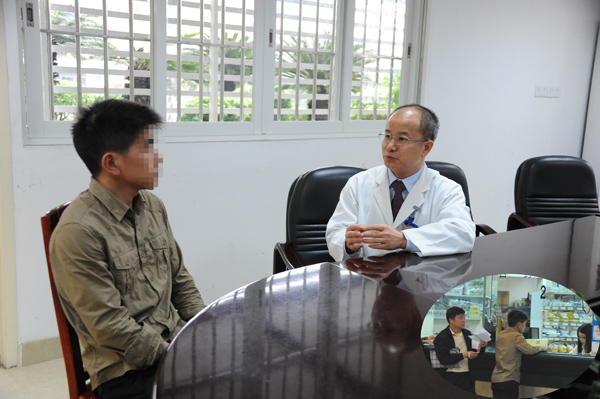胡允兆副院長(zhǎng)(右)與患者交流,聽取客觀的就診體驗(yàn)。 |