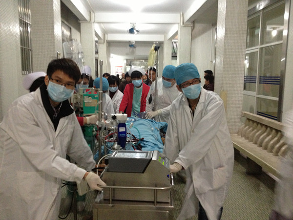 醫(yī)務(wù)人員迅速將危重患者送往ICU。