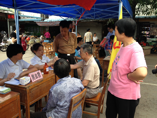 醫(yī)護人員為群眾免費測量血糖。