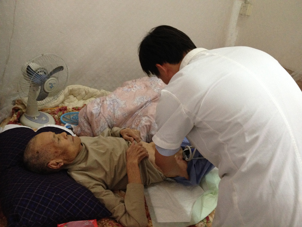 醫(yī)生來到長期患病的老伯家中為他診療。