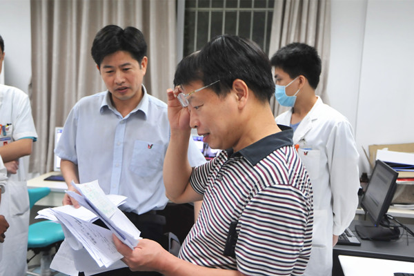 彭達(dá)明副處長(zhǎng)檢查我院大型放射項(xiàng)目的收費(fèi)情況。