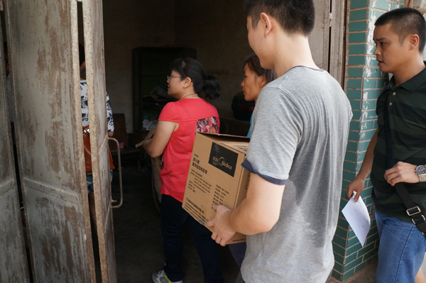 在助學(xué)行中,廖玉聯(lián)黨代表帶著黨員志愿者走訪了幾個(gè)生活特別困難的小學(xué)生家庭,了解了他們家庭情況,為他們送去了一些生活必需品和用具。