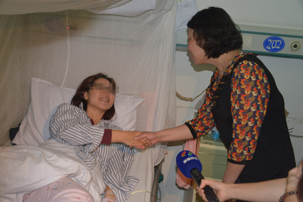 周愛(ài)群常委(右)慰問(wèn)登革熱患者,鼓勵(lì)她戰(zhàn)勝疾病。