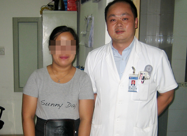 殷海東副主任醫(yī)師為黃女士進(jìn)行低溫等離子微創(chuàng)消融術(shù)。