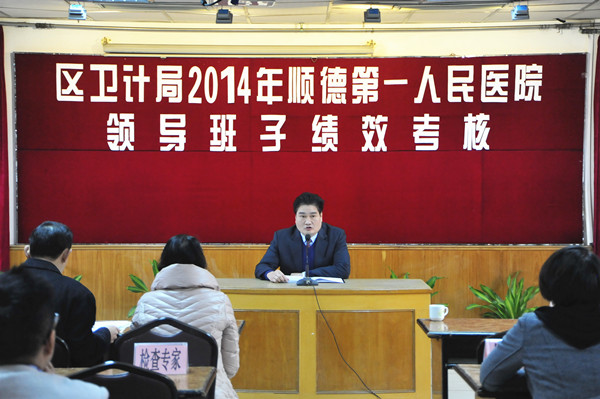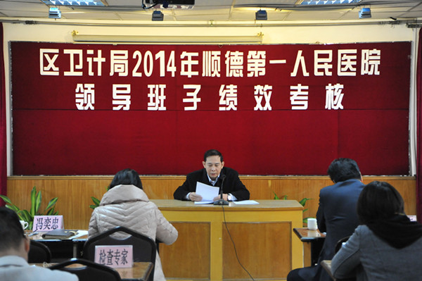 12月23日上午,由順德區(qū)常委、區(qū)衛(wèi)生和人口計(jì)劃生育局局長周愛群帶領(lǐng)的績效考核專家組一行50多人來到我院,開展2014年公立醫(yī)療衛(wèi)生單位領(lǐng)導(dǎo)班子績效考核檢查。我院陳小伍院長率全體領(lǐng)導(dǎo)班子及有關(guān)部門負(fù)責(zé)人給予了熱情接待。