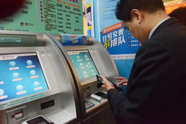 醫(yī)院陳小伍院長在服務(wù)窗體驗(yàn)支付寶服務(wù)。