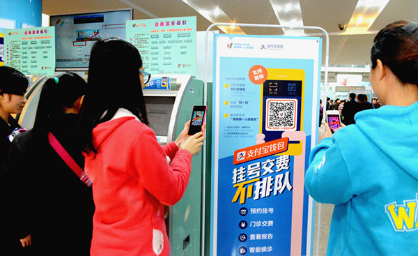 市民利用手機(jī)掃描我院支付寶服務(wù)窗二維碼。