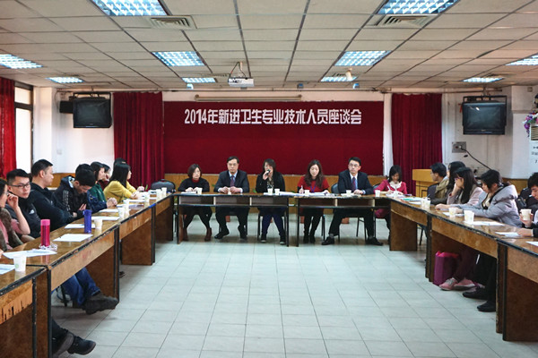 為能更好地了解2014年新進(jìn)衛(wèi)生專業(yè)技術(shù)人員的思想、工作和生活情況, 2015年1月22日下午,我院在行政六樓2室召開了2014年度新進(jìn)衛(wèi)生專業(yè)技術(shù)人員座談會。座談會由人事科主任姚敏卿主持。醫(yī)院黨委副書記鐘劍萍和黨政辦公室、人事科、醫(yī)務(wù)科、護(hù)理部、財(cái)務(wù)部、宣傳教育科、科教科以及總務(wù)科等相關(guān)職能部門負(fù)責(zé)人參加了會議。