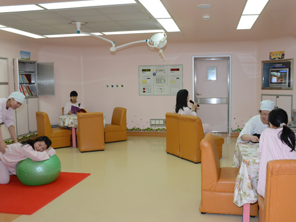 產(chǎn)房待產(chǎn)區(qū)幫助孕婦快樂生產(chǎn)。