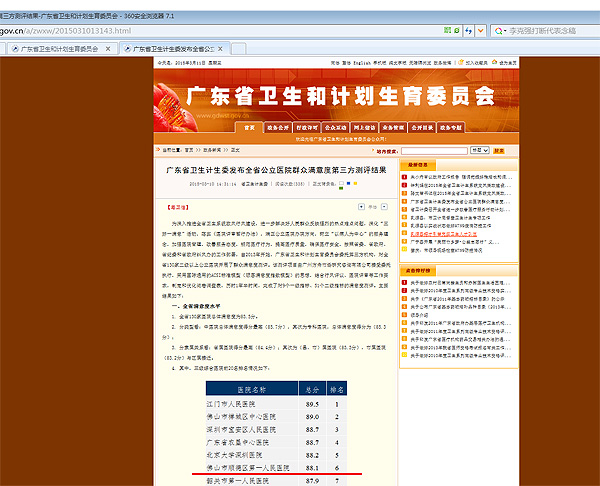 在去年省衛(wèi)健委公布的2013年度全省99間三甲醫(yī)院滿意度排名中,我院位列佛山市公立綜合醫(yī)院第一,全省醫(yī)院總排名第九,全省綜合醫(yī)院及全省區(qū)屬醫(yī)院排名均為第五成績的基礎(chǔ)上,今年再進(jìn)一步,實屬不易,也是近年來,我院不斷努力改進(jìn)服務(wù)的結(jié)果。