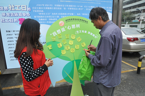 今年社工日主題為“發(fā)展社會(huì)工作,創(chuàng)新社會(huì)治理”。這些年通過(guò)堅(jiān)持不懈的努力,順德區(qū)的社工服務(wù)發(fā)展領(lǐng)域日益擴(kuò)大,而在醫(yī)務(wù)社工的發(fā)展也開(kāi)始萌芽。2014年9月,順德區(qū)第一人民醫(yī)院醫(yī)務(wù)社工站成立,秉承著“以病人為中心”的服務(wù)理念,協(xié)助病人解決因疾病所引致的情緒及生活問(wèn)題,堅(jiān)持“用生命影響生命,以愛(ài)心感染愛(ài)心”,竭誠(chéng)為患者提供貼心的服務(wù)。