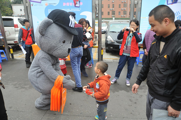 大型吉祥物與小朋友互動(dòng)。