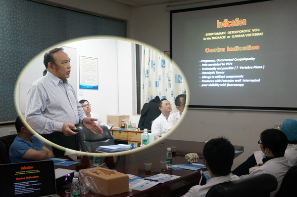 Bambang博士來我院,通過手術(shù)示范和學(xué)術(shù)交流指導(dǎo),將椎體成形囊袋技術(shù)傳授給我院,在順德成功開展了首例脊柱成形囊袋手術(shù),使我院脊柱外科又向前邁進了一步,并將為順德的骨質(zhì)疏松骨折患者提供更安全、有效的治療。