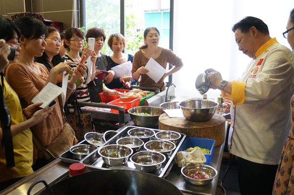 而在中式廚藝班,為了學(xué)習(xí)一道菜式的制作,學(xué)員們把老師圍了個(gè)水泄不通,紙筆、手機(jī)全拿出來了,認(rèn)真記錄、拍攝老師的示范動(dòng)作,生怕遺漏任何一個(gè)細(xì)節(jié)。當(dāng)在老師的指導(dǎo)下,學(xué)員親手制作出了銻盤烤雞、涼瓜炒牛肉、彭公鵝、鑊上叉燒、煎焗排骨等本地有名的菜式后,學(xué)員們可有成就感了,盡管沒有大廚的手藝高超,但吃在嘴里卻是香噴噴的。