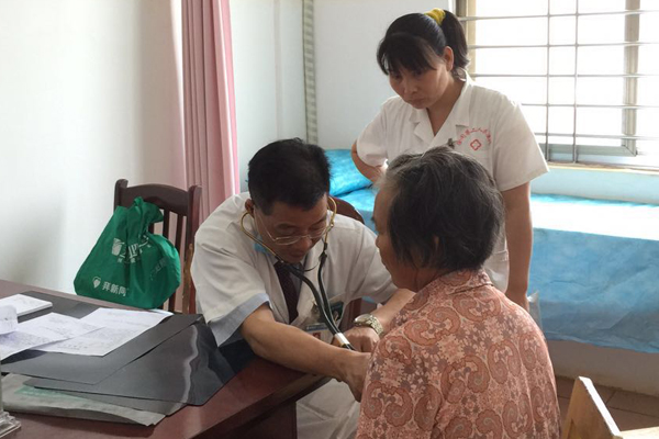 朱達堅副院長(左)在為當?shù)厝罕娺M行診斷。