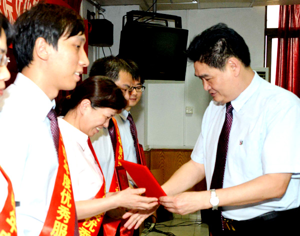 陳小伍院長(zhǎng)為優(yōu)質(zhì)服務(wù)標(biāo)兵頒發(fā)證書。