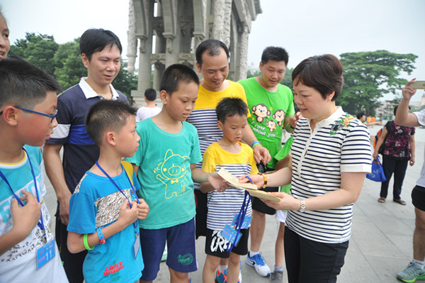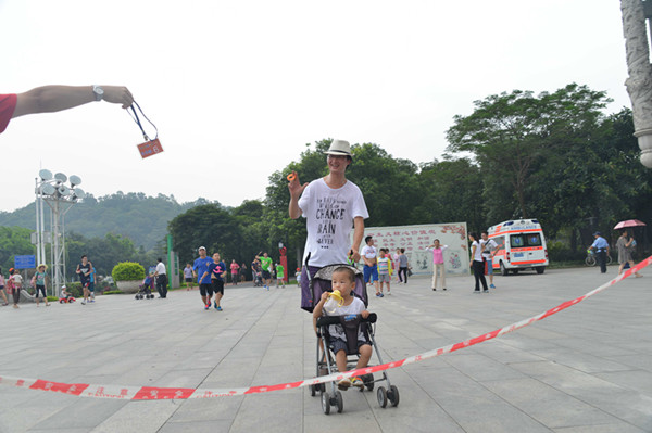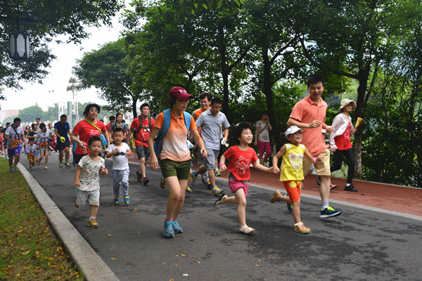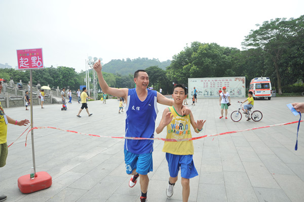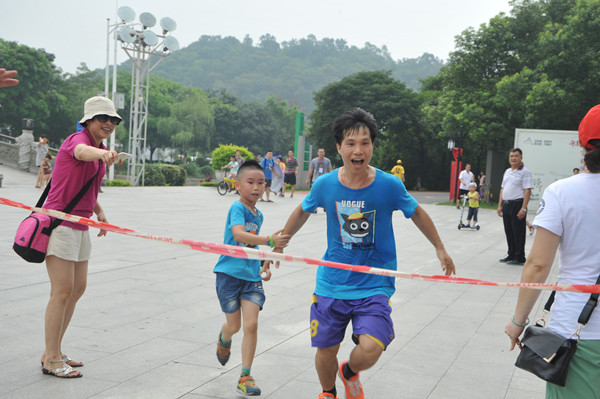 約45分鐘后,一對(duì)父子沖向了終點(diǎn),在眾多游客的歡呼聲中,完成了親子健步行的沖刺,他們奪得了今天的冠軍。隨后,一組組家庭用健步走完了全程,來(lái)到了終點(diǎn)。
