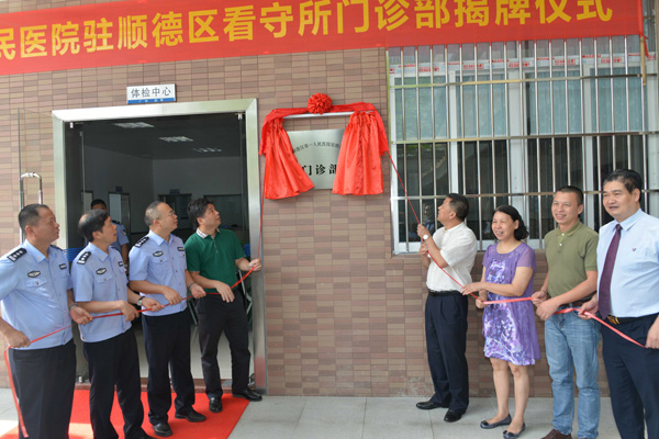 6月9日上午,在明媚的陽光下,順德區(qū)委副書記、區(qū)政法委書記杜鏡初,區(qū)委常委周愛群,順德區(qū)副區(qū)長、公安局局長盧志雄,省公安廳監(jiān)管總隊副總隊長潘陽元,佛山市公安局副局長梁恩球等領(lǐng)導(dǎo),與我院陳小伍院長一道,共同揭開了“順德區(qū)第一人民醫(yī)院駐順德區(qū)看守所門診部”的牌匾,標志著省內(nèi)第一個符合國家標準的專業(yè)化監(jiān)所門診正式啟動。