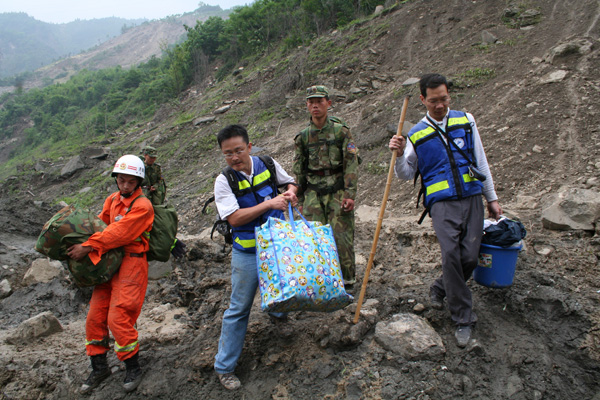 2008年汶川大地震,醫(yī)務(wù)人員冒著生命危險(xiǎn)徒步進(jìn)入震中。