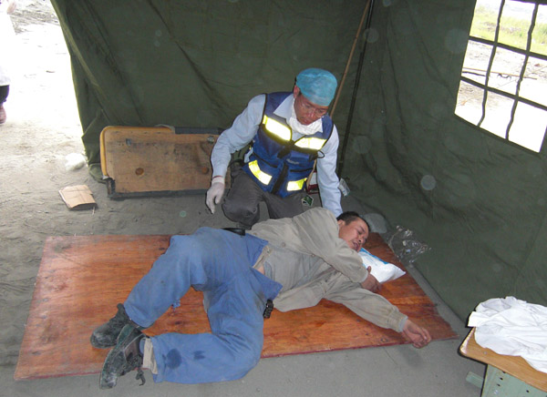 我院醫(yī)師在汶川映秀鎮(zhèn)搶救受傷群眾。