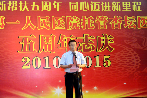 總院陳小伍院長在慶典上,豪情滿懷地描繪了附屬杏壇醫(yī)院新一個(gè)五年的發(fā)展藍(lán)圖,要求附屬杏壇醫(yī)院從服務(wù)能力、醫(yī)院管理、人才培養(yǎng)、人才平臺(tái)建設(shè)、醫(yī)療質(zhì)量、醫(yī)療技術(shù)等6個(gè)方面創(chuàng)新思維,狠下苦功,爭取在新的一個(gè)五年里,讓醫(yī)院各項(xiàng)管理和業(yè)務(wù)發(fā)展再上一個(gè)層次。