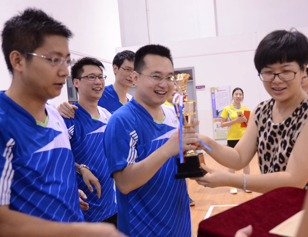 附屬杏壇醫(yī)院代表隊的10名運動員,在該院胡德銳副院長、周順環(huán)支委的帶領下,早早就到達比賽現(xiàn)場。經(jīng)過激烈的晉級賽,最后進入決賽,并最終奪冠,獲得此次比賽的第一名,全體隊員站上了本屆比賽的最高領獎臺,接受共青團杏壇鎮(zhèn)團委孔佩華常務副書記的頒獎!