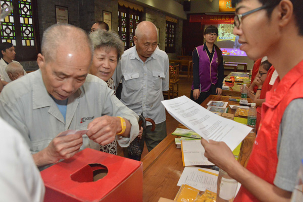當(dāng)天下午,幾十名老年人在他們的家人攙扶下,冒雨來到活動現(xiàn)場接受咨詢,并在義工的幫助下,學(xué)習(xí)記憶辨識游戲。