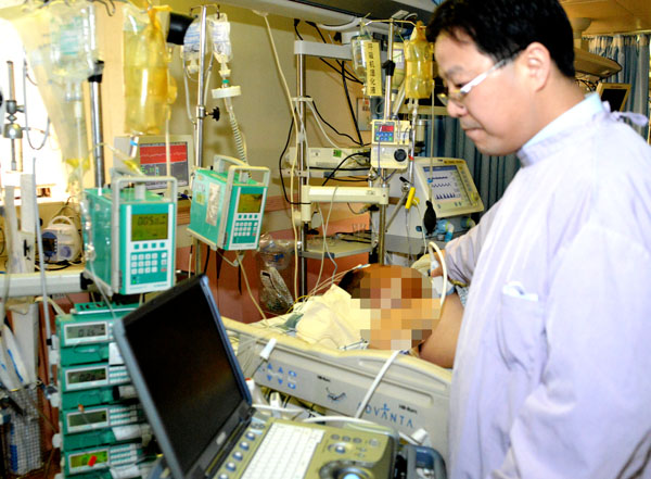 左六二醫(yī)師在觀察重癥患者病情變化情況。