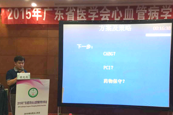 會議期間,心血管內(nèi)科楊友醫(yī)生代表我院胡允兆團(tuán)隊參加“冠心病介入學(xué)組專場”交流,分享了一例三支病變左主干狹窄,右冠CTO分階段處理的病例,并就冠脈介入適應(yīng)癥及圍手術(shù)期并發(fā)癥處理與來自廣東省人民醫(yī)院的周穎玲教授等參會專家進(jìn)行深入討論。短短三天的精彩交流,展示了我院心血管專業(yè)團(tuán)隊的整體實力,獲得了省內(nèi)外同行的好評。