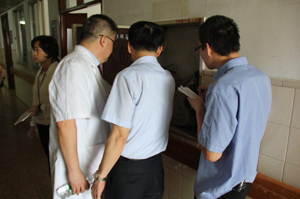 錢江副院長(右二)到相關(guān)科室檢查用電安全。