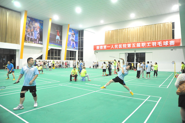 為舒緩職工工作壓力,活躍醫(yī)院文娛生活,促進(jìn)職工身心健康,加強(qiáng)科室之間的交流溝通,11月9日,由醫(yī)院工會(huì)、團(tuán)委舉辦的“第五屆羽毛球團(tuán)體賽”在順德一中羽毛球館拉開帷幕。本次比賽各科室踴躍報(bào)名,共有41支隊(duì)伍向獎(jiǎng)牌發(fā)起沖擊。場(chǎng)上運(yùn)動(dòng)健兒揮汗如雨,場(chǎng)下“球迷”激情吶喊,每一次扣殺每一次救球都引發(fā)起陣陣歡呼,在八天的比賽日里,全院職工將盡情享受運(yùn)動(dòng)的快樂。
