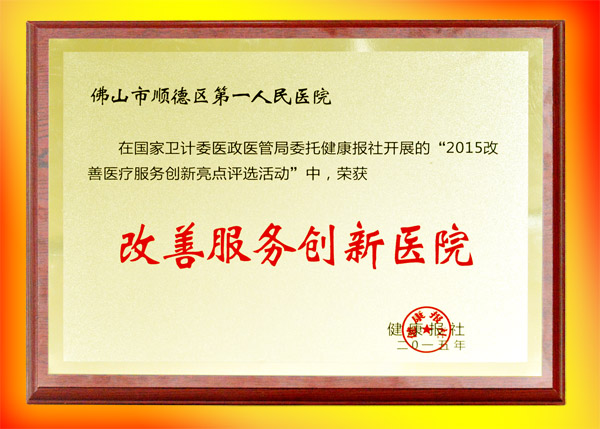 我院榮獲全國百家“2015改善服務創(chuàng)新醫(yī)院”,為佛山市唯一獲得該榮獲的醫(yī)院。