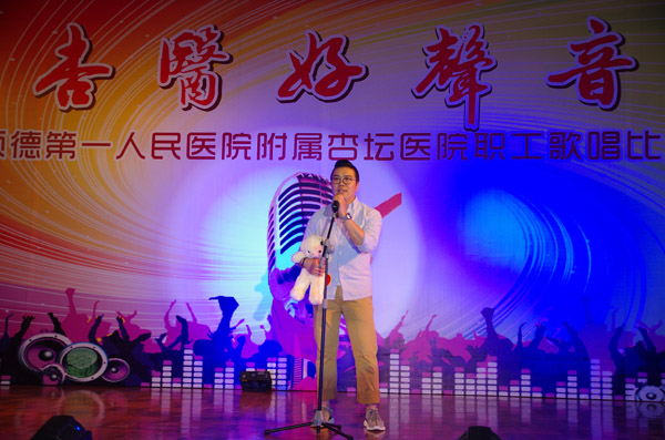 醫(yī)院黨總支副書記、工會主席梁善堂代表院務(wù)會及工會致辭,預(yù)祝本次比賽圓滿成功。醫(yī)院胡德銳副院長等院領(lǐng)導(dǎo)親臨現(xiàn)場觀賽,邀請專業(yè)歌手擔(dān)任評委。