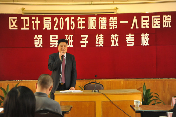 1月8日上午,由順德區(qū)衛(wèi)計(jì)局局長譚俊杰帶領(lǐng)的績效考核專家組一行60余人來到我院,開展2015年公立醫(yī)療衛(wèi)生單位領(lǐng)導(dǎo)班子績效考核檢查。我院院長陳小伍率全體領(lǐng)導(dǎo)班子及有關(guān)部門負(fù)責(zé)人給予了熱情接待。