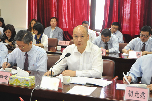 4月19日下午,區(qū)委常委、常務副區(qū)長賴雪暉帶領區(qū)衛(wèi)健局局長譚俊杰、常務副局長曹毅、紀檢組長黃馮、副局長歐陽雪喬等一行來到我院開展調研,醫(yī)院黨委書記劉映南率全體黨委班子成員、附屬杏壇、陳村醫(yī)院領導班子及相關職能部門、臨床科室的中層干部參加了會議。會議由譚俊杰局長主持。