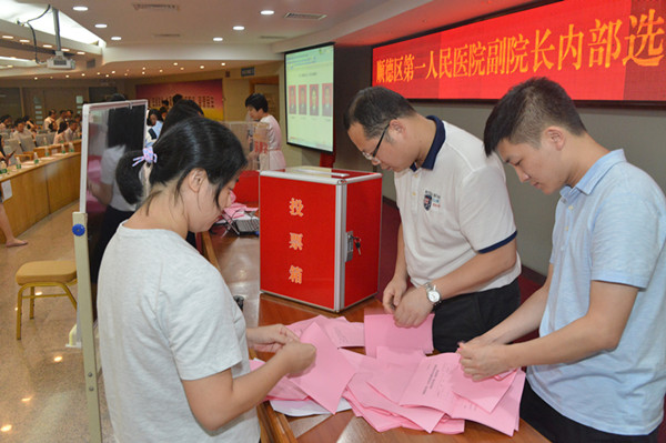 6月18日下午1時(shí),順德區(qū)第一人民醫(yī)院290名員工代表,走進(jìn)了大良街道辦三樓會(huì)議室,參加由順德區(qū)衛(wèi)計(jì)局組織的區(qū)第一人民醫(yī)院副院長內(nèi)部選拔大會(huì),他們肩負(fù)著全院2000多員工的重托,在這里內(nèi)部選拔出員工心目中的副院長!