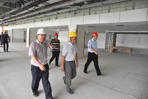 在新醫(yī)院工地現(xiàn)場(chǎng),區(qū)公用事業(yè)局相關(guān)負(fù)責(zé)人就醫(yī)院的建設(shè)進(jìn)度向區(qū)人大常委會(huì)進(jìn)行了匯報(bào),目前新醫(yī)院全部建設(shè)項(xiàng)目招標(biāo)工作已全部完成,各項(xiàng)工程正緊鑼密鼓進(jìn)行施工,主體結(jié)構(gòu)已經(jīng)完工,中央空調(diào)計(jì)劃今年9月中旬完工,全部基建和裝修工程將于今年9月底之前完成。區(qū)政務(wù)委員林勝初表示,目前新醫(yī)院建設(shè)進(jìn)度正按計(jì)劃進(jìn)行,區(qū)政府將繼續(xù)做好施工方與使用方的協(xié)調(diào)工作,確保工程安全、高質(zhì)、如期完成。