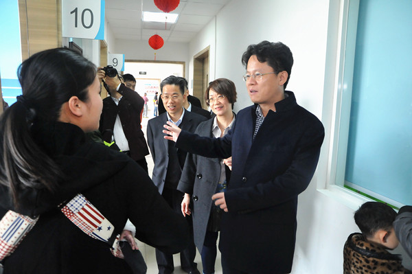 在新醫(yī)院兒科門診,王常委詳細(xì)了解了近期門診的開診情況及春節(jié)期間的工作安排,并向正在坐診的醫(yī)務(wù)人員送上新春祝福和節(jié)日問候。為緩解患兒就診的不安情緒,兒科門診設(shè)置了兒童玩樂區(qū)以及圖書區(qū),讓患兒通過娛樂的方式耐心候診。該措施得到王常委的贊揚(yáng),他親切地與患兒家屬交談,并祝?;純涸缛湛祻?fù),愉快過新年!