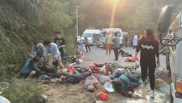 李國華醫(yī)生是郴州人,一直從事醫(yī)生工作20多年了,今年從廣東回到郴州祭奠先人。聽說王仙嶺風(fēng)景優(yōu)美,山泉水很甜,4月3日下午和家人一起來到王仙嶺游玩,臨近下午了因為晚上還和同學(xué)約了聚會,5點多鐘開始下山回城,正好走到王仙嶺拐彎路段,前面開車的妹夫楊學(xué)軍告訴她們堵車了,可能前面發(fā)生車禍了。一聽到發(fā)生車禍李國華女士本能反應(yīng)是否會有人受傷呢?立即和家人跑過去。一到事發(fā)現(xiàn)場被驚呆了,幾十個人倒在地上,到處都是血,還不時傳來痛苦的呻吟和救命的呼聲,以從醫(yī)多年的經(jīng)驗仔細看了現(xiàn)場,已經(jīng)有多人沒有生命跡象了。